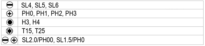 - двухсторнняя насадка "прямой шлиц"/"крест" - 2 шт