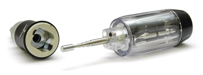 В комлекте имеется прецизионная миниотвертка для использования в труднодоступных местах, а также магнитное телескопическое устройство (до 40 см).