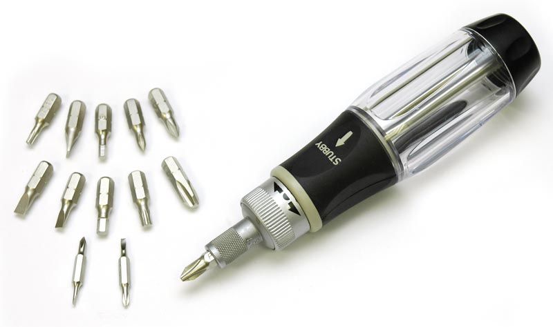 Прецизионная отвертка с храповым механизмом АНТ-5026 с 11 односторонними сменными насадками (M2 - 7х25 мм) и двумя двухсторонними прецизионными насадки (M2 - 4х25 мм) . Комплект предназначен для ремонтных, сервисных и наладочных работ в приборостроении, компьютерной технике и точной механике.