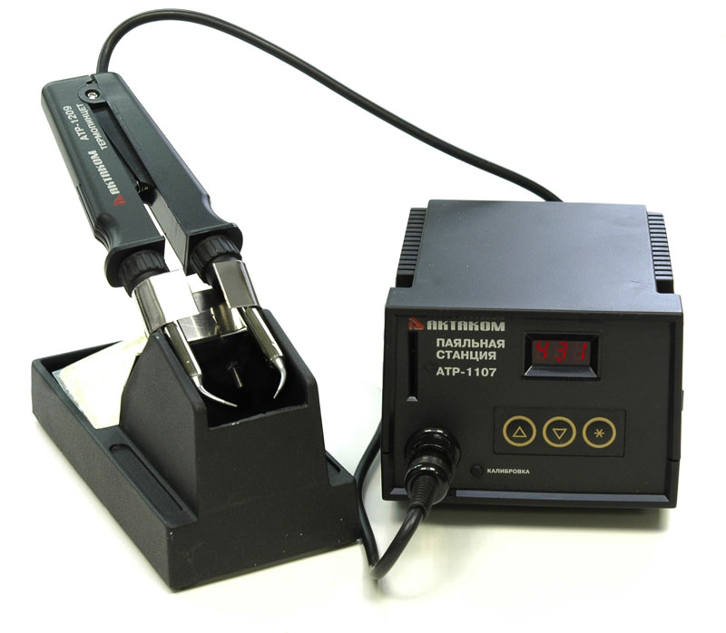 Паяльная станция 60 Вт, регулировка t=200...480 °C, цифровая индикация, антистатическая защита, керамический нагреватель. Совместима с термопинцетами АТР-1209 и ASE-1209.