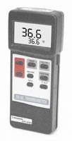 Недорогой двухканальный портативный цифровой измеритель температуры. Имеет хорошую точность измерений, переключаемое разрешение 0,1 °С / 1 °С, прочный и удобный корпус. Прибор снабжен рядом дополнительных функций, среди которых удержание показаний, отображение максимальных и минимальных значений в ходе измерения, определения разности температур.