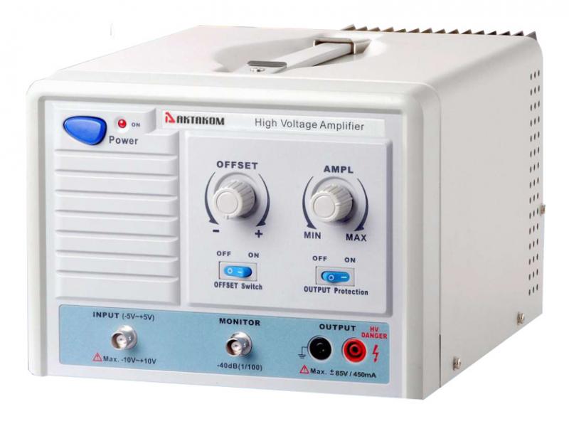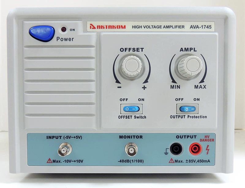 Амплитудные усилители АКТАКОМ AVA-1745 предназначены для усиления амплитуды сигналов в полупроводниковой и высоковольтной инженерии и в других областях. Приборы имеют коэффициент усиления по напряжению от 0 до 180 и снабжены несколькими ступенями защиты по выходу от перегрузки. Амплитуда выходного сигнала регулируется десятиоборотным резистором, что обеспечивает высокую точность управления. Кроме того, предусмотрена возможность установки смещения постоянной составляющей. Для контроля выходных характеристик предусмотрен выход «Monitor» с коэффициентом ослабления 100:1, предназначенный для подключения к осциллографу.