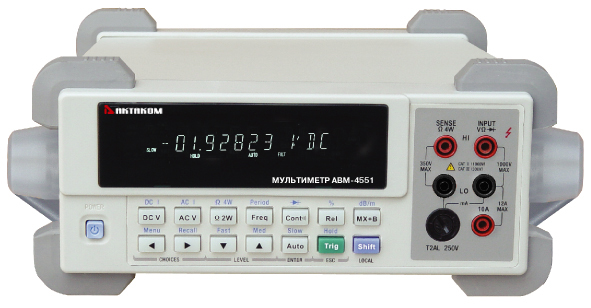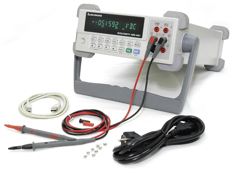 Настольный универсальный мультиметр АВМ-4551 предназначен для измерения широкого круга величин: напряжения, тока, сопротивления, частоты, тестирования диодов. Широкие функциональные возможности мультиметра АВМ-4551, включая измерение иcтинных среднеквадратических значений (TrueRMS), изменяемую разрядность дисплея, сравнение результатов измерений с заданными значениями и возможность дистанционного управления, позволяют рекомендовать мультиметр АВМ-4551 для применения в разнообразных отраслях промышленности, в научно-исследовательских и образовательных целях, сервисных службах.