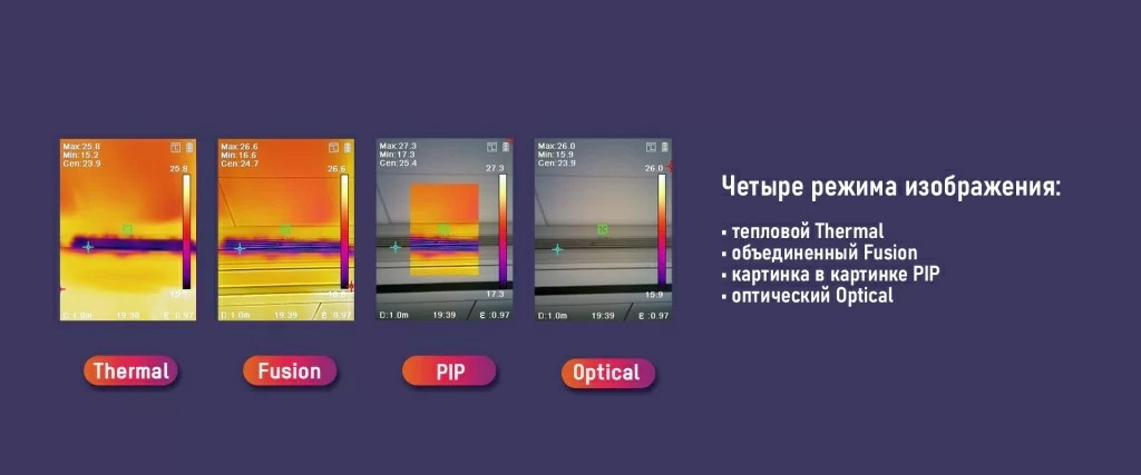 | Режимы изображения | тепловой/оптический/объединение/картинка в картинке |