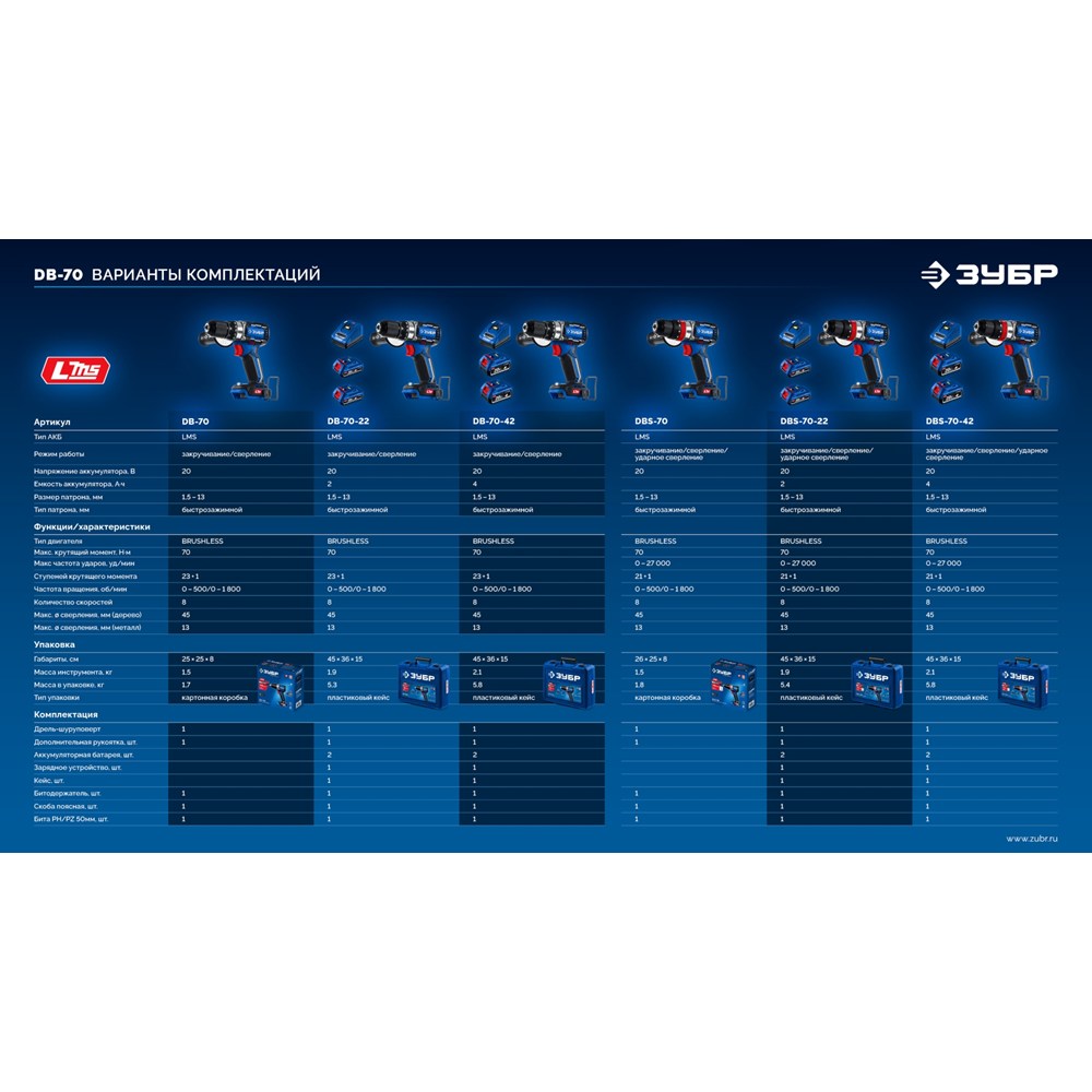 Высокотехнологичная модель в новой линейке аккумуляторного инструмента ЗУБР серии LMS Дрель-шуруповерт профессионального уровня с передовым BRUSHLESS двигателем.