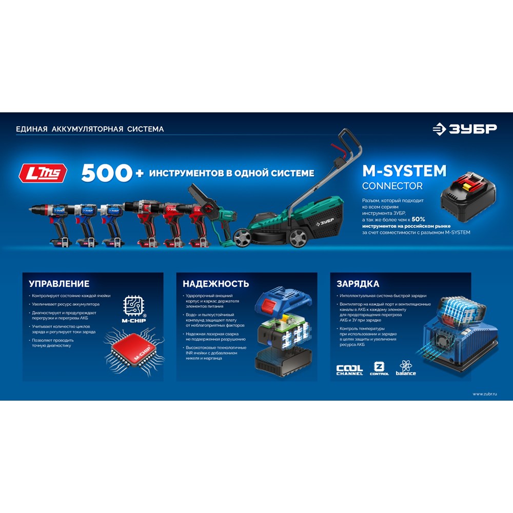 - Единая аккумуляторная система LMS для 500+ инструментов