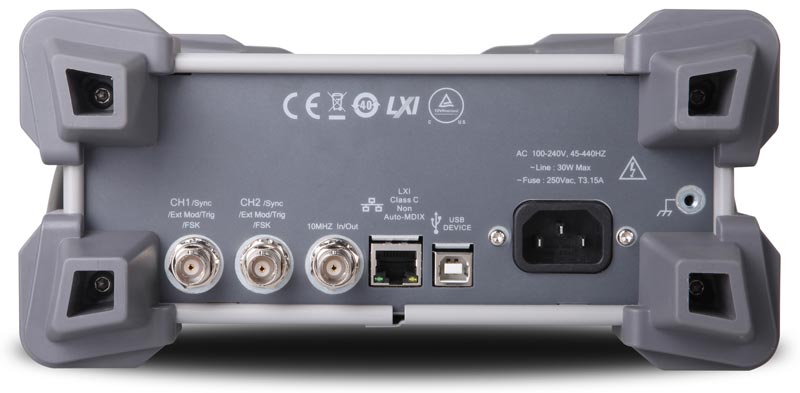 Генератор сигналов. 2 канала. Диапазон: 1 мкГц...60 МГц (Sin). Амплитуда вых. сигнала до 10 Впп; 160 встроенных форм сигналов. Частота сэмплир.: 200 Мвыб/с.; ЦАП - 14 бит; глубина записи - 2М (16М опция). Джиттер 200 пс. Погрешность опорного генератора: 1 ppm. Фазовый шум -125 дБн/Гц. Фазовый сдвиг: 0..360. Модуляция: AM, FM, PM, ASK, FSK, PSK, PWM; режим качания частоты; режим пачек импульсов. Частотомер 200 МГц. SiFi технология. Интерфейс: USB device, USB host, LAN (поддержка LXI класс С). Дисплей: 3,5" TFT , 320 х 240. Размеры: 261,5 х 112 х 318,4 мм. Вес: 3,2 кг.