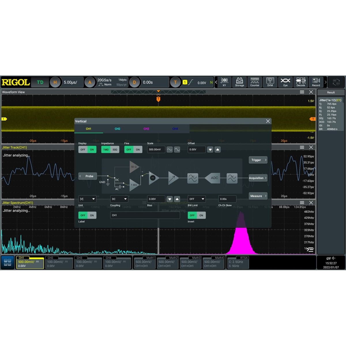 - Различные математические операции, встроенный расширенный анализ БПФ, и функция поиска пиков;