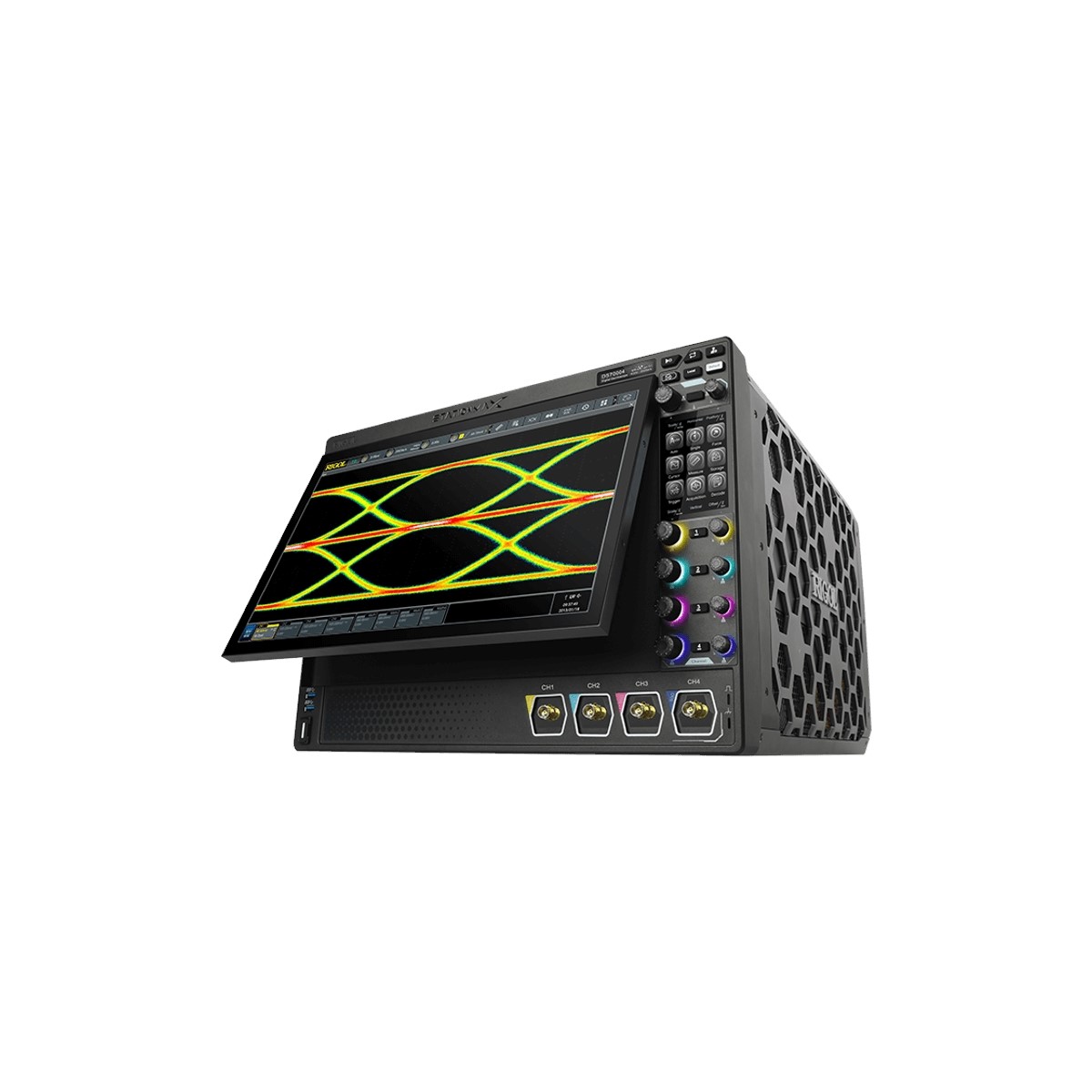DS70304 – высокопроизводительный прецизионный осциллограф с полосой пропускания до 3 ГГц. Реализован на технологической платформе с архитектурой UltraVision III (3-го поколения). Данная технология обеспечивает более качественные технические характеристики (частота дискретизации, глубина памяти, скорость захвата осциллограмм и разрешение по вертикали) по сравнению с предыдущими моделями осциллографов.