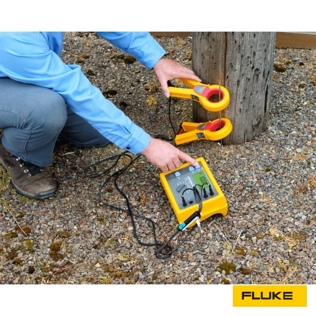 Измеритель сопротивления заземления Fluke 1625 II Kit способен измерять сопротивление заземляющего контура при помощи одних зажимов. При использовании этого метода рядом с заземляющим стержнем размещаются два зажима, каждый из которых подключается к измерителю. Заземляющие электроды не используются. Одним зажимом подается известное фиксированное напряжение, а вторым зажимом измеряется сила тока. Затем, измеритель автоматически определяет сопротивление заземляющего стержня. Данный метод тестирования действует только в том случае, если на проверяемом здании или структуре есть связанная система заземления, в большинстве случаев, такая система есть. При наличии всего одного заземляющего контура, что часто бывает во многих жилых домах, безэлектродный метод оказывается неэффективным, поэтому необходимо использовать тестовый метод падения напряжения.