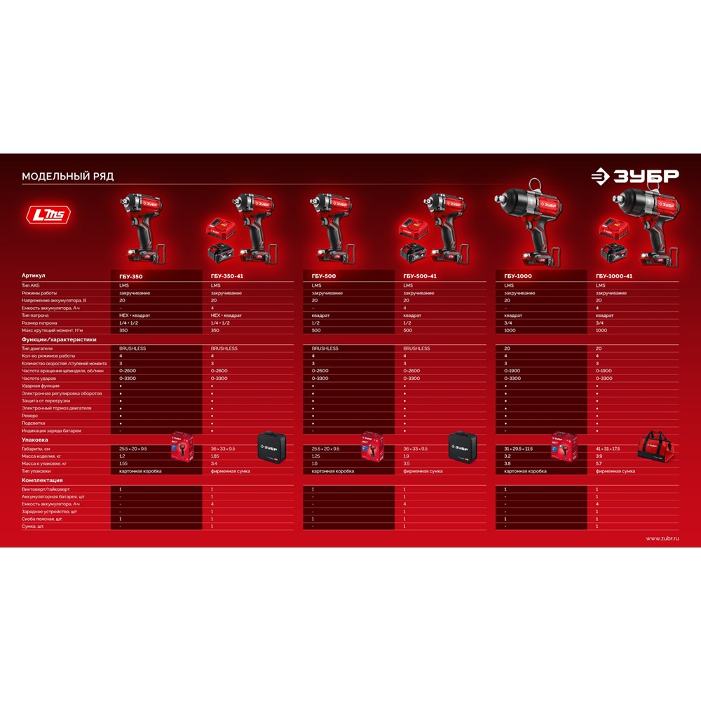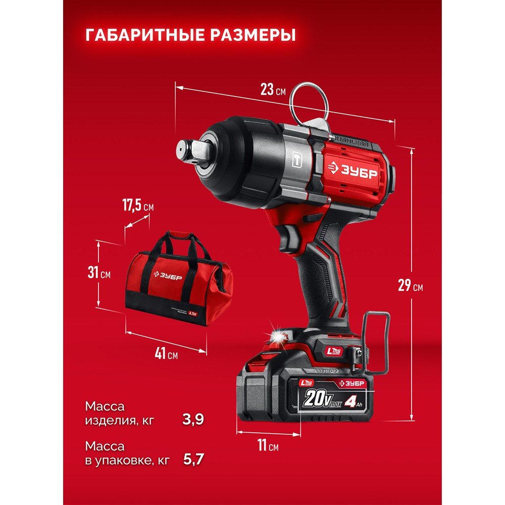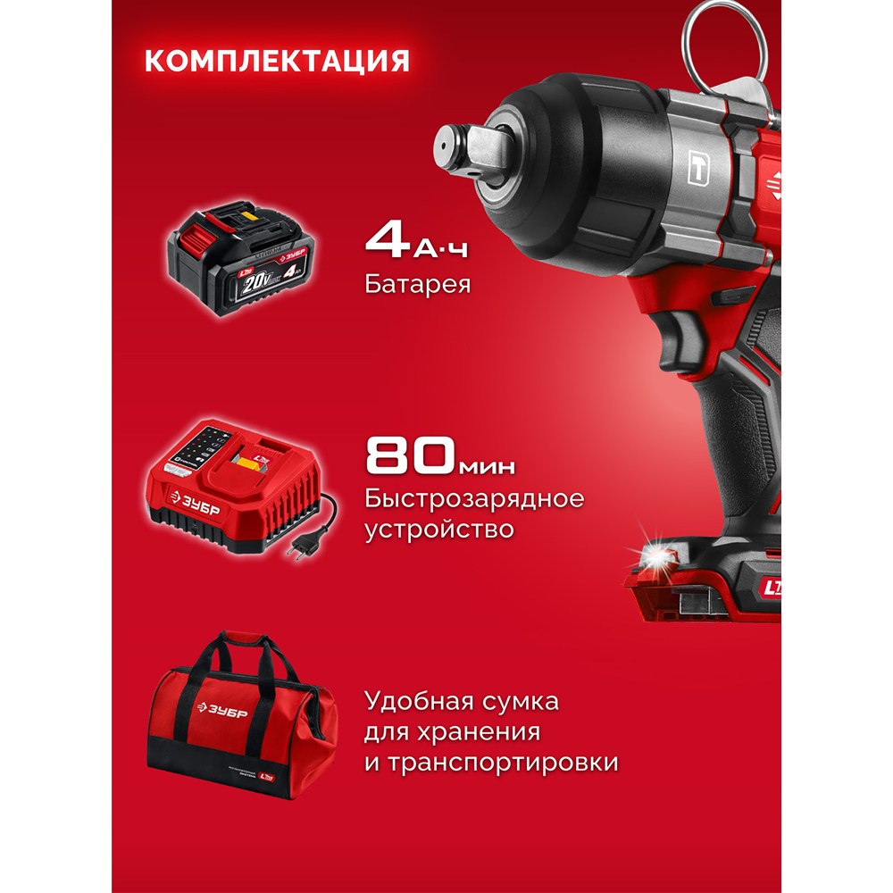 Бесщеточный ударный гайковерт ЗУБР системы LMS с максимальным крутящим моментом 1000 Нм предназначен для фиксации резьбовых соединений размером до М26. Ударная функция с тангенциальным направлением удара обеспечивает эффективное заворачивание без реактивного момента на кисть оператора. Комплектация с аккумулятором большой емкости позволяет работать дольше на одном заряде