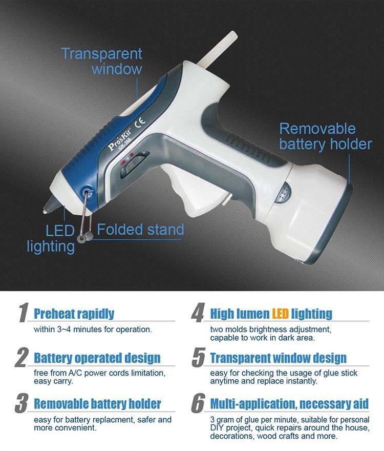 Клеевой пистолет ProsKit GK-368 на батарейках