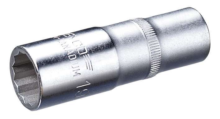 Особо длинная хром-ванадиевая торцевая головка с канавкой под шариковый фиксатор. Хромированная, частично полированная.
