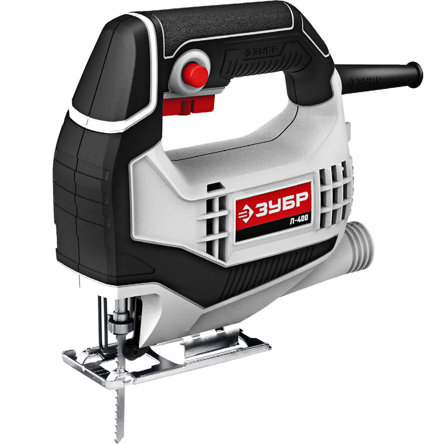 Лобзик электрический ЗУБР Л-400, предназначен для продольного, поперечного, косого и фигурного пиления заготовок из дерева, фанеры, ДСП, пластмасс и металла (при установке соответствующего полотна).