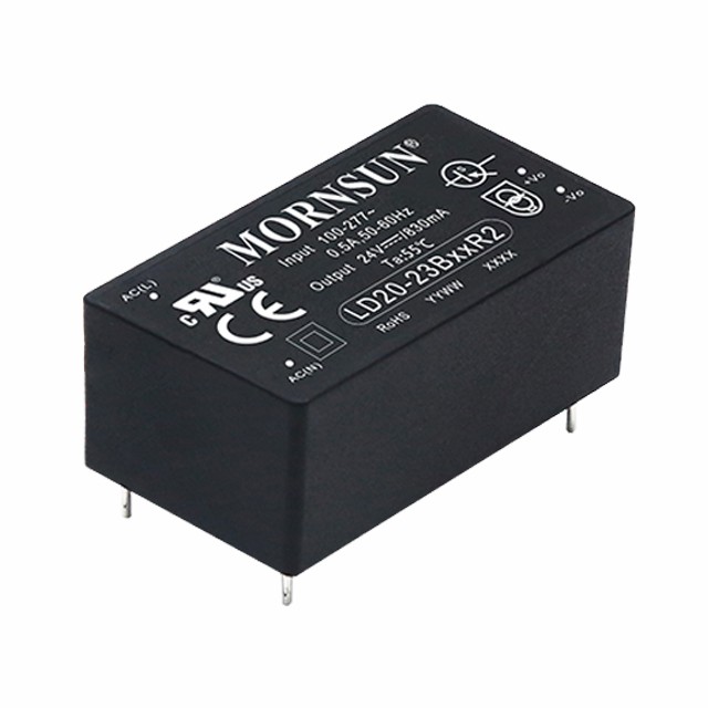 LD20-23BxxR2 series AC-DC converter is one of Mornsun’s new generation compact size power converter. It features ultra-wide AC input and at the same time accepts DC input voltage, low power consumption, low ripple & noise, high efficiency, high reliability, reinforced isolation. It offers good EMC performance compliant to IEC/EN61000-4 and CISPR32/EN55032 and meets IEC/EN/UL62368/EN60335/ EN61558/IEC/EN60601-1/ANSI/AAMI ES60601-1 standards. The converters are widely used in industrial, power, medical treatment, home appliances, instrumentation, communication and civil applications. For extremely harsh EMC environment, we recommend using the application circuit show in Design Reference of this datasheet.
