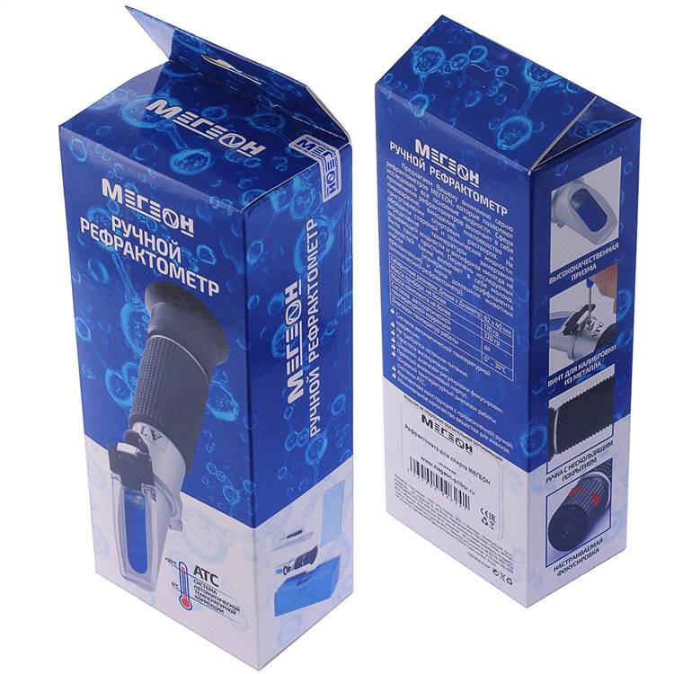 МЕГЕОН 72017 относится к оптическим измерительным приборам - рефрактометрам, которые предназначены для определения коэффициента преломления исследуемого вещества и проецировании отраженного света на специально отградуированный экран. Характеристики жидкости (концентрация, плотность и т.д.), устанавливаемые рефрактометром, определяют вид шкалы, нанесенной на экран. Для повышения точности предусмотрена система автоматической температурной коррекции (ATC), которая имеет широкий температурный диапазон работы. Для исследования достаточно нанести две- три капли на призму с градуировкой, закрыть прижимное стекло и настроить фокусировку. Не требуется источник питания, что даёт возможность производить измерения при низких температурах. Эргономичный корпус из алюминиевого сплава и простота эксплуатации максимально увеличивают срок службы изделия.