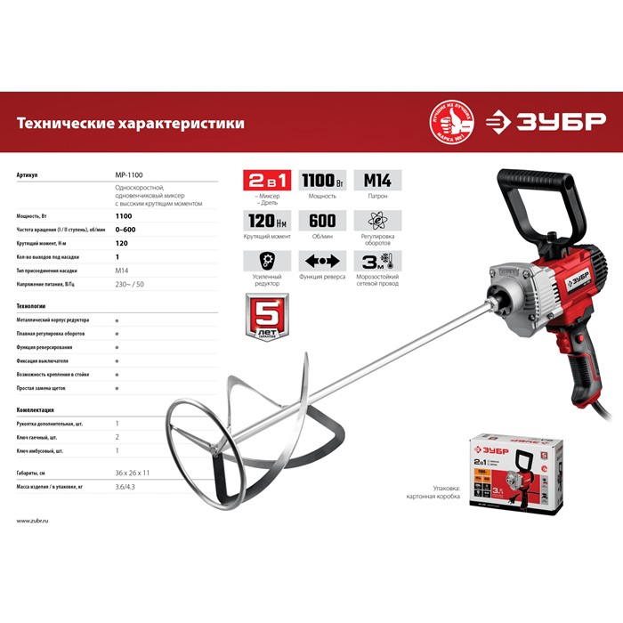 Миксер строительный МР-1100 Зубр