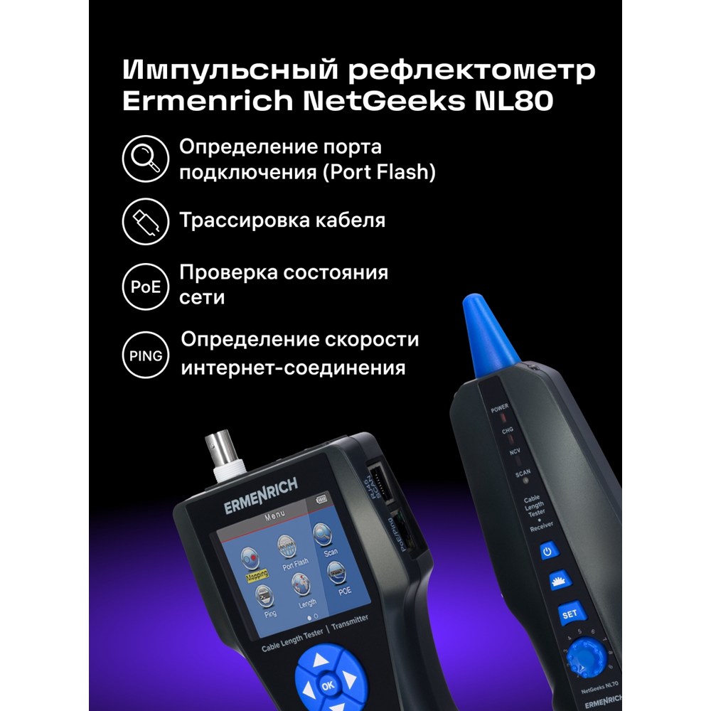 Измеритель длины кабеля Ermenrich NetGeeks NL80