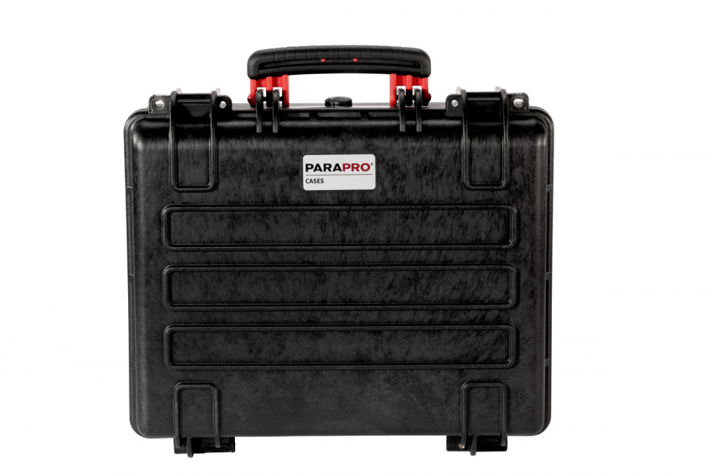 Чёрный инструментальный чемодан PARAPRO фирмы PARAT изготовлен из добротного толстостенного полипропилена и считается почти неразрушаемым. Его размер 445 x 345 x 190 мм (Ш х В х Г), что означает достаточную вместимость. Инструментальный чемодан герметичен и защищён от внешнего воздействия. Установлен клапан автоматического выравнивания давления. Всё это делает чемодан на 100 % пыле-, водо- и воздухонепроницаемым. Инструментальный чемодан специально предназначен для использования вне помещений, он выдерживает температуру от - 33 до + 90 °C. Нанесеннные на шильдик данные с фамилией и адресом помогают установить принадлежность чемодана к определённому сотруднику. Чемодан может запираться на навесной замок. Мягкие вкладыши с амортизаторами обеспечивают защиту содержимого от ударов.