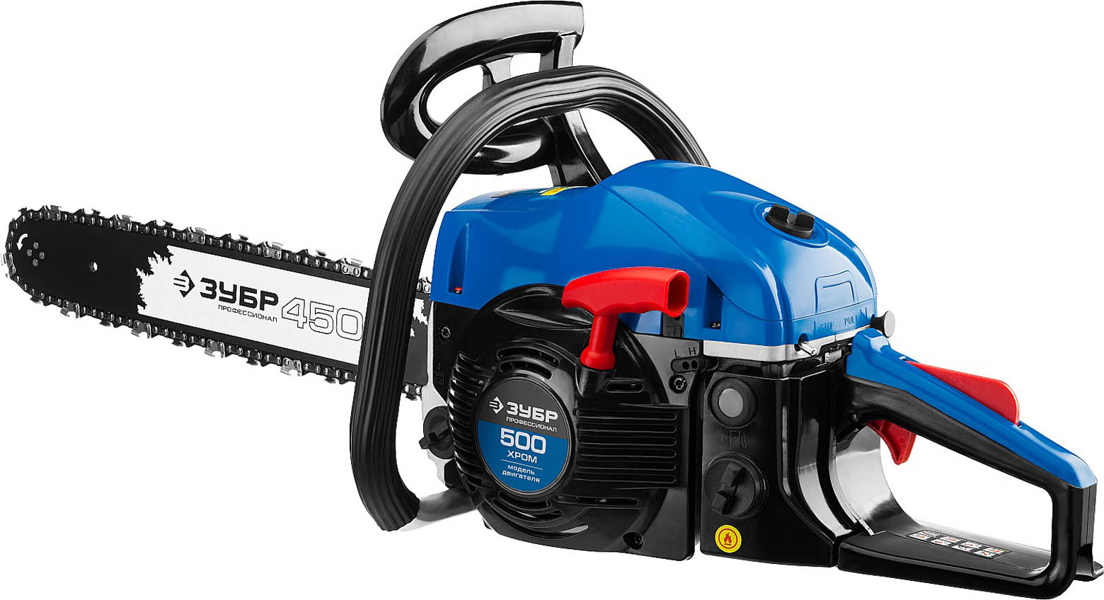 Пила цепная бензиновая, ЗУБР Профессионал ПБЦ-490 45ДП, хромир. цилиндр, праймер, декомпрессионный клапан, 49 см3 (2,2 кВт), шина 45 см, 12500 об/мин