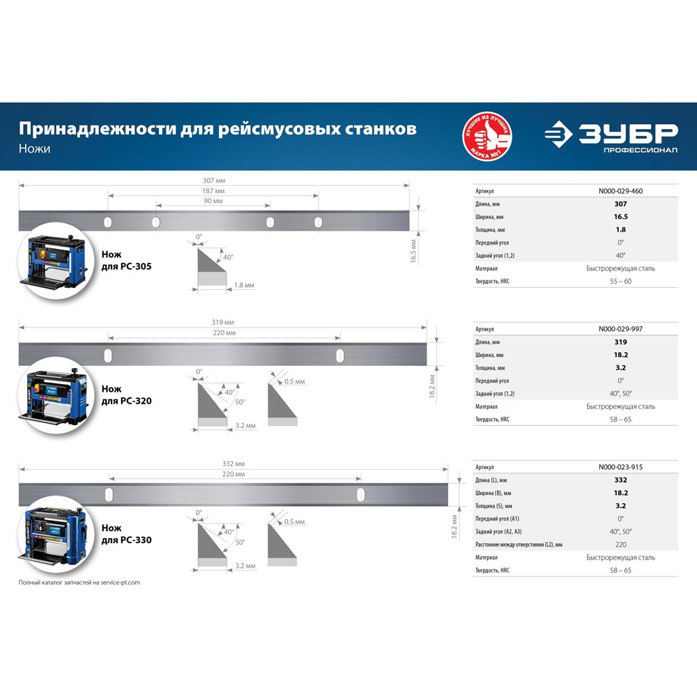 | Размер ножа, мм: | 307х16.5х1.8 |