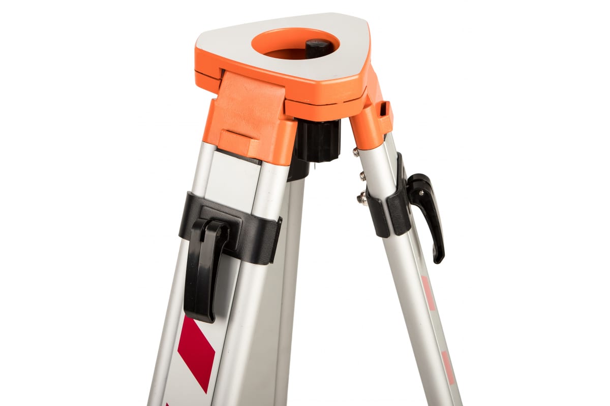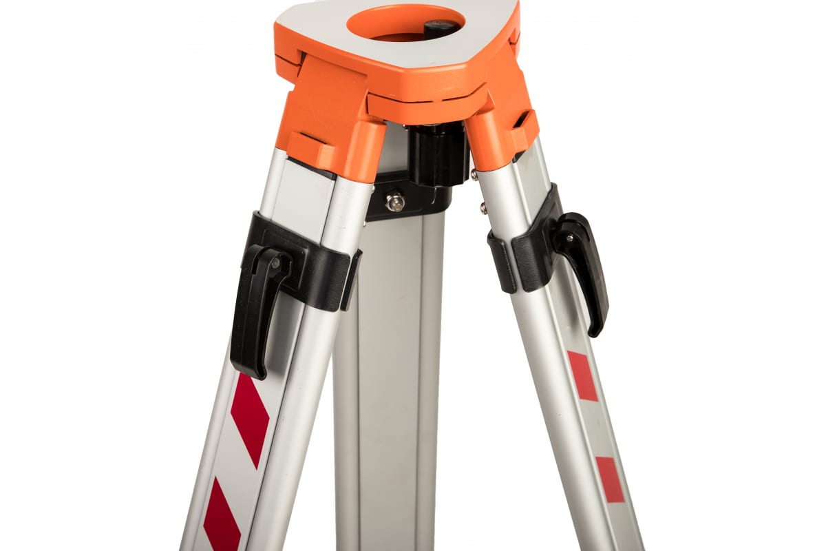 В целях обеспечения повышенной надежности и стабильности при работе с дорогостоящими устройствами, фиксация телескопических стоек осуществляется комбинированным методом - сочетанием винтового механизма и специальных клипс. Ножки оборудованы прочными площадками-упорами, которые позволяют глубоко углубить заостренные наконечники даже в землю, обеспечивая надежность установки прибора на геодезическом штативе.