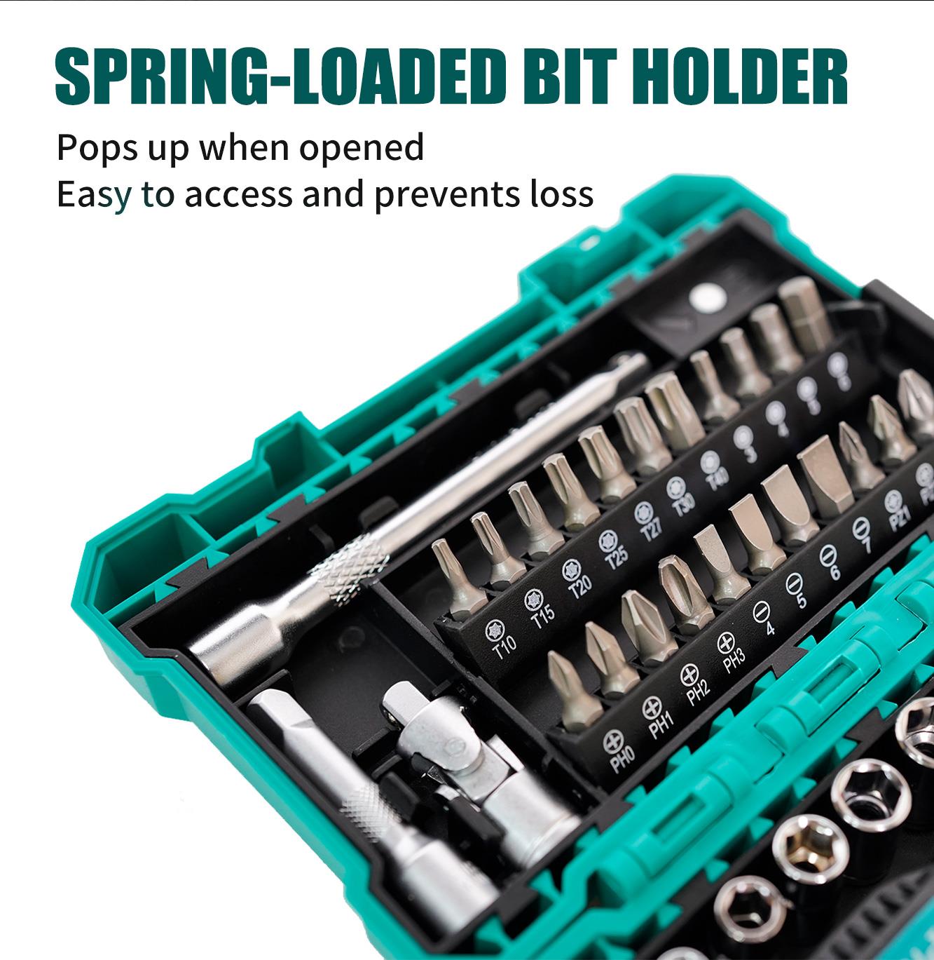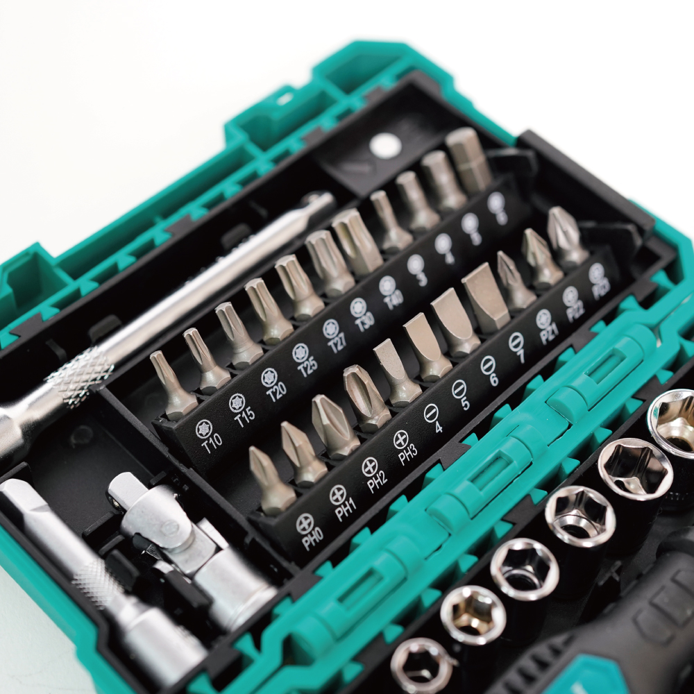 Pro’sKit SD-2338M — это лёгкий, прочный и компактный набор отвёрток и головок с трещоткой, идеально подходящий для широкого спектра ремонтных работ. Он оснащён 48-зубчатым двусторонним трещоткой и совместим как с шестигранными головками, так и с битами для отвёрток. В набор входят различные часто используемые биты, головки, удлинители и адаптеры, идеально подходящие для работы в ограниченном пространстве.