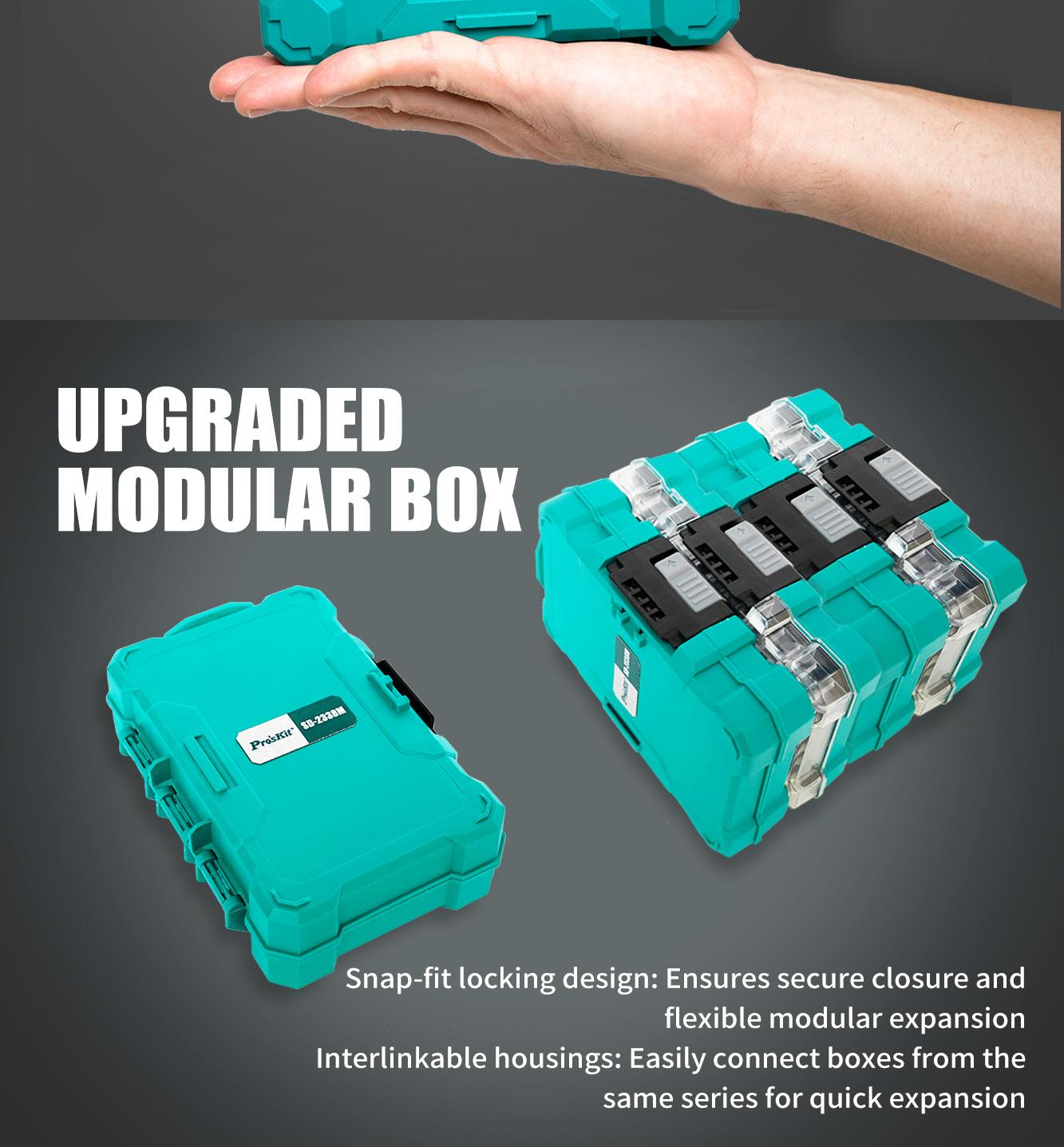 Усовершенствованный ударопрочный кейс для хранения позволяет хранить инструменты в порядке и удобно использовать дома, в автомобиле или на улице.