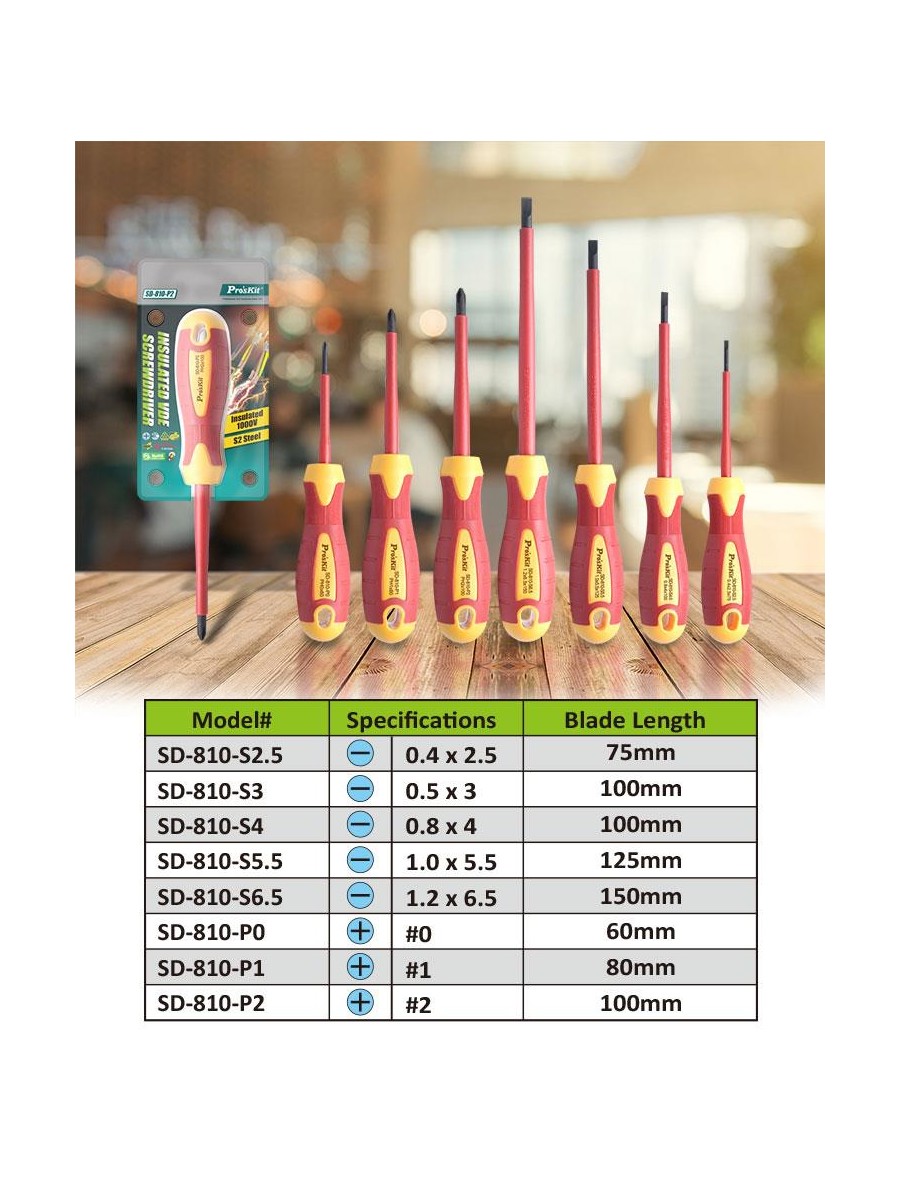 Отвертка изолированная (VDE) Pro'sKit SD-810-S3.0