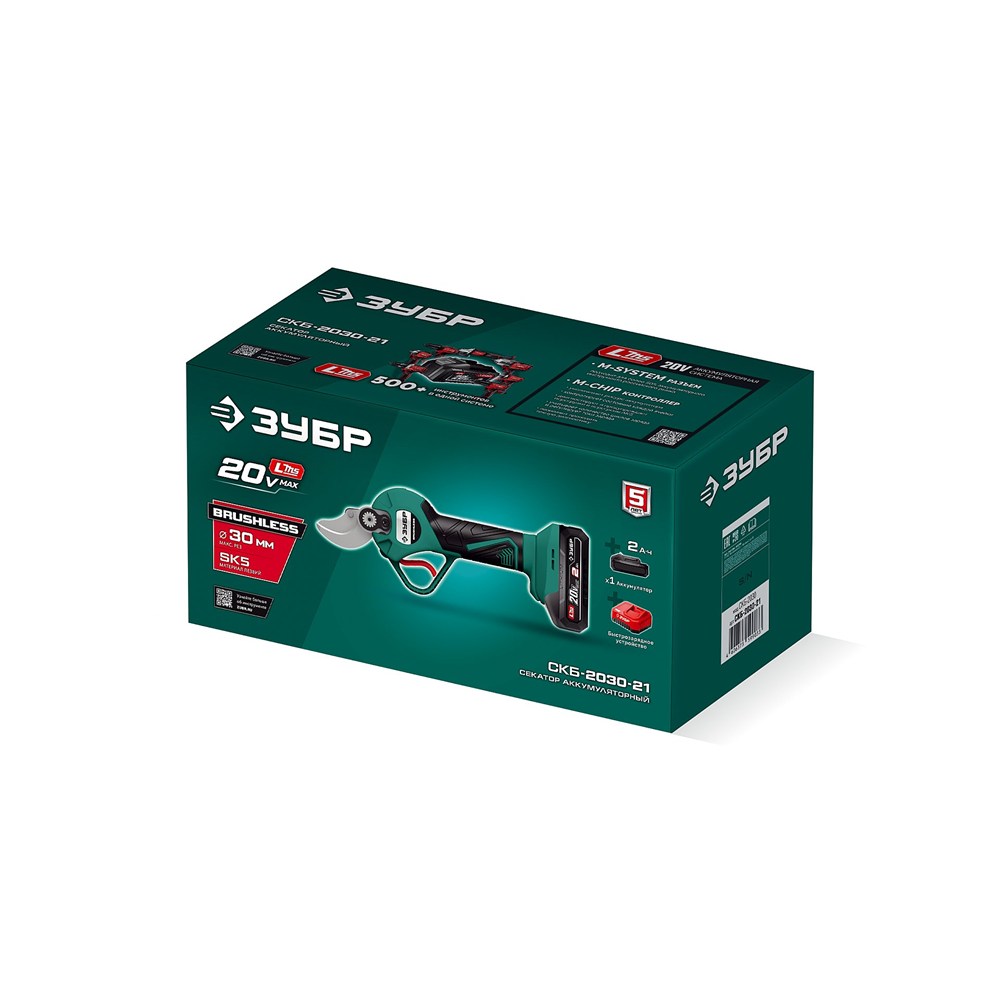 ЗУБР 20 В, 30 мм макс. рез, 1 АКБ LMS (2 Ач), секатор аккумуляторный (СКБ-2030-21)