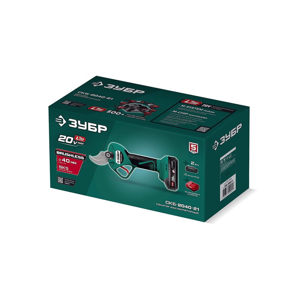 ЗУБР 20 В, 40 мм макс. рез, 1 АКБ LMS (2 Ач), секатор аккумуляторный (СКБ-2040-21)