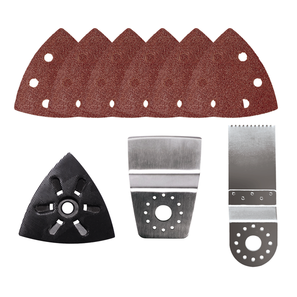 Многофункциональный инструмент Einhell TC-MG 220/1 E позволяет выполнять весь спектр работ по пилению, обдирке/шлифовке и выскабливанию всего одним инструментом. Благодаря магнитному фиксированию и универсальному зажиму оснастка меняется просто и быстро. Инструмент оборудован четырехточечным зажимом для оснастки. Мощный 220-ваттный двигатель в сочетании с электронной регулировкой частоты колебаний позволяет подобрать подходящий режим для любого вида работ и материала. Приятная и безопасная работа с покрытием Softgrip. В комплект поставки входят: дельтавидная шлифовальная подошва, 6 шлифлистов (3*P60/3*P120), скребок, погружное пильное полотно по дереву и пластику, переходник для пылеудаления и шестигранный ключ.