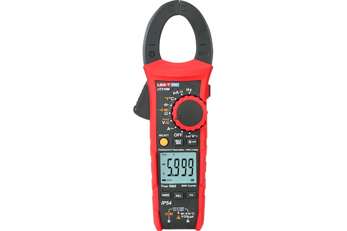 Токоизмерительные клещи бренда UNI-T модели UT219M используются для измерения постоянного и переменного напряжения и тока, сопротивления. Есть подсветка дисплея, подсветка рабочей области, автоматический и ручной выбор диапазона измерений. Есть функция проверки последовательности 3-фазных двигателей 600 В.