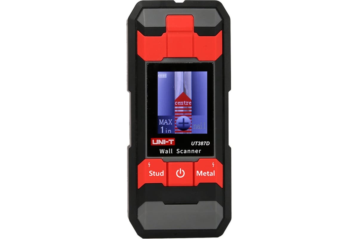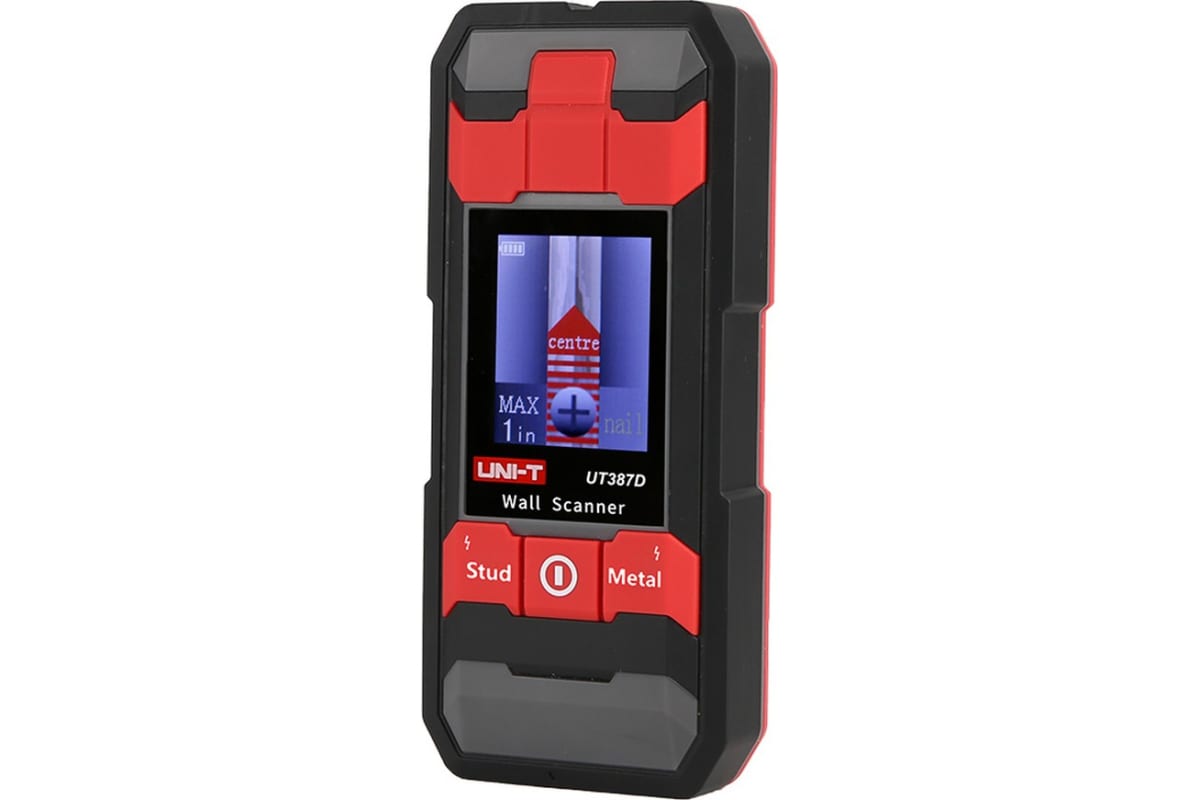 Детектор стен UT387D основан на принципе электро-магнитная индукции. Распознает: электрическое напряжение, металл, древесину. Глубина обнаружения: 100 мм - железная труба, 80 мм - латунная труба, 38 мм - гвоздь в дереве, 50 мм - проводка переменного тока