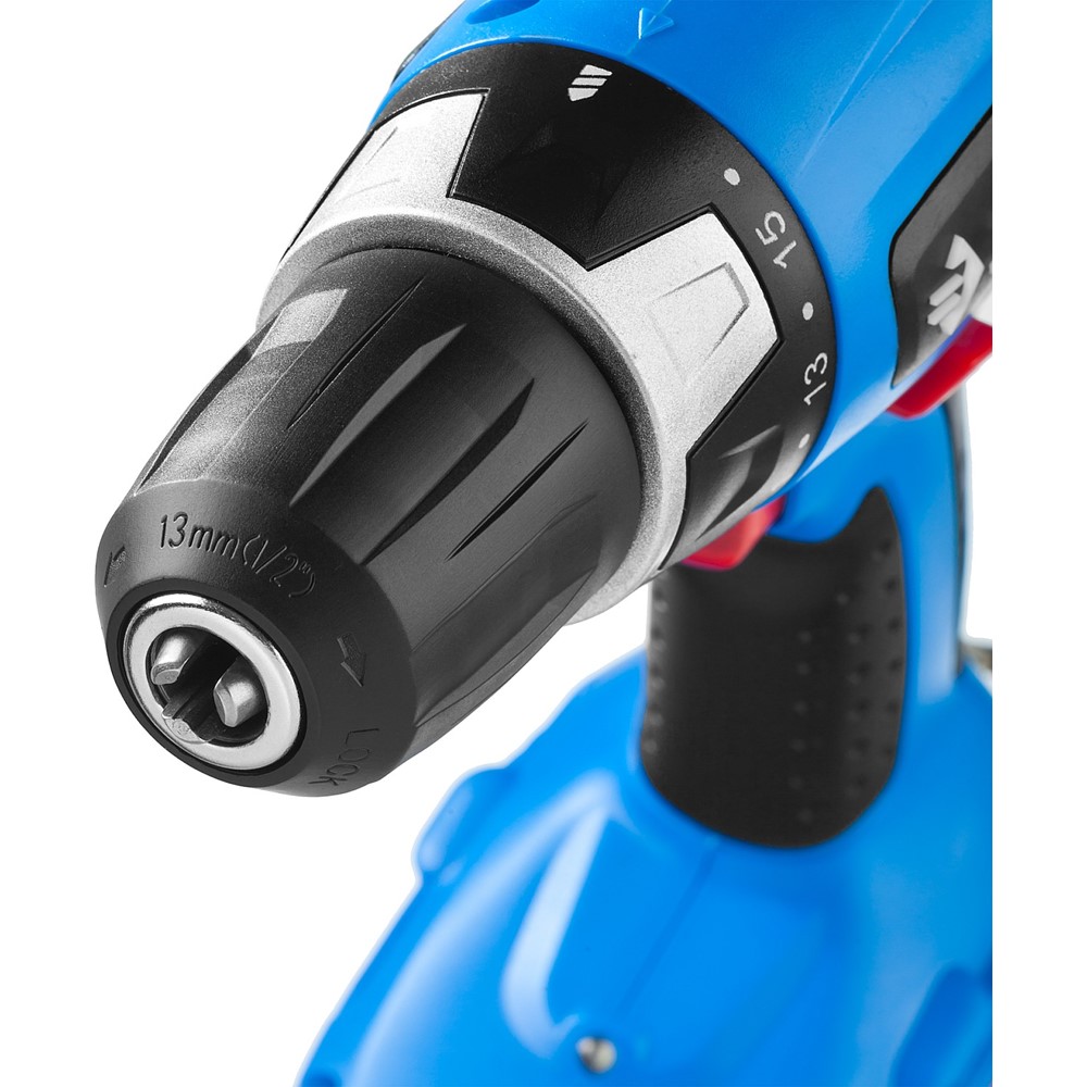Аккумуляторная дрель шуруповерт ЗУБР ЗДА-18-2 КИН20, предназначена для сверления отверстий в различных материалах (при установке сверла), а также для вкручивания/выкручивания шурупов, саморезов и винтов (при установке соответствующих бит). Мощный современный шуруповерт с двумя энергоемкими батареями для безостановочной работы. Эргономичный современный инструмент с идеальной развесовкой. Усиленный двигатель поможет справиться с самыми тяжелыми нагрузками. Увеличенная емкость аккумулятора позволяет развить больший крутящий момент и продлевает время работы от одной зарядки. Два аккумулятора в комплекте помогают работать практически без простоев. Двухскоростной планетарный редуктор при малых габаритах обеспечивает большой крутящий момент на первой скорости и высокие максимальные обороты на второй. Блокировка шпинделя облегчает и ускоряет смену расходного инструмента, а также позволяет доворачивать крепеж вручную. Широкий диапазон регулировки крутящего момента позволяет настраивать изделие под предстоящую работу.