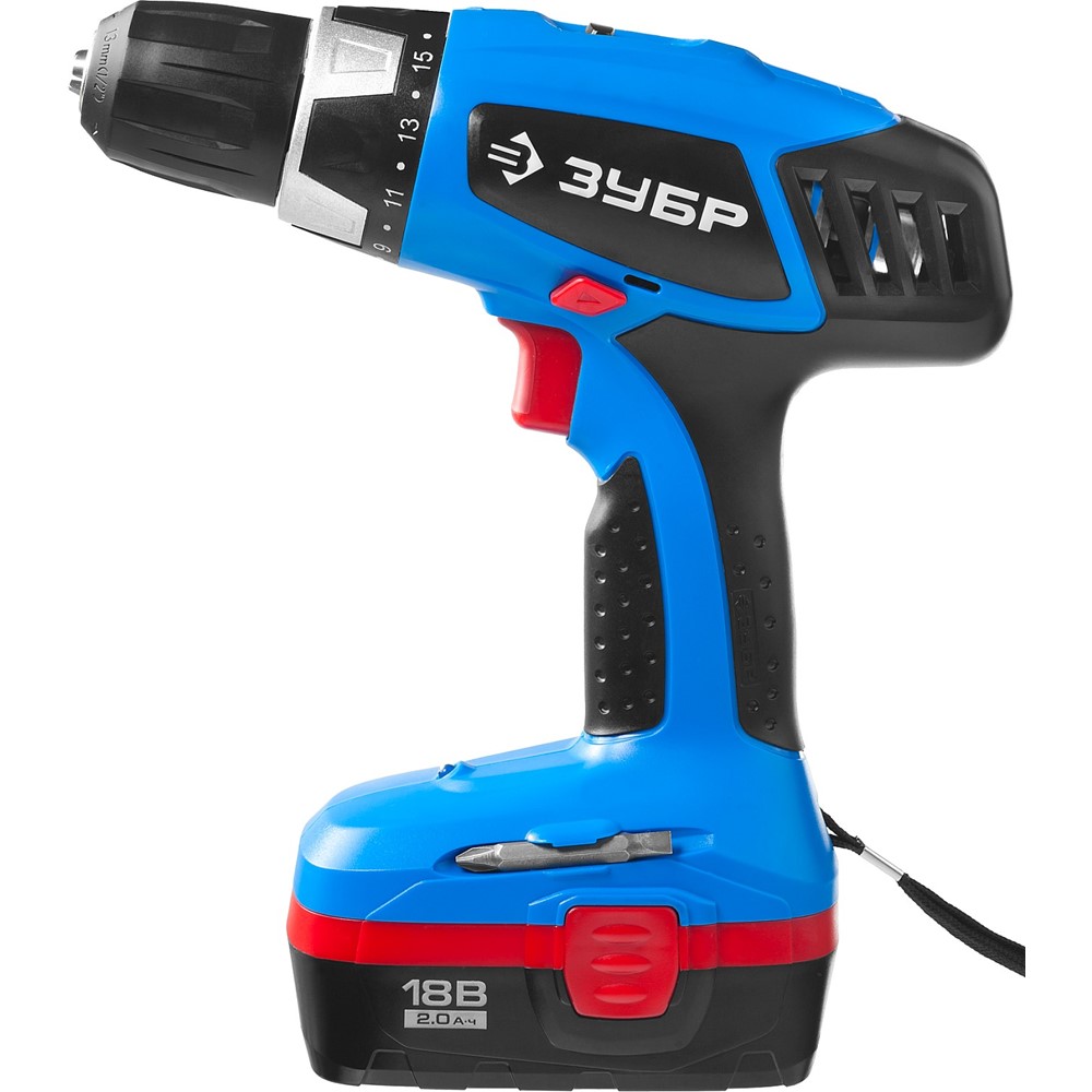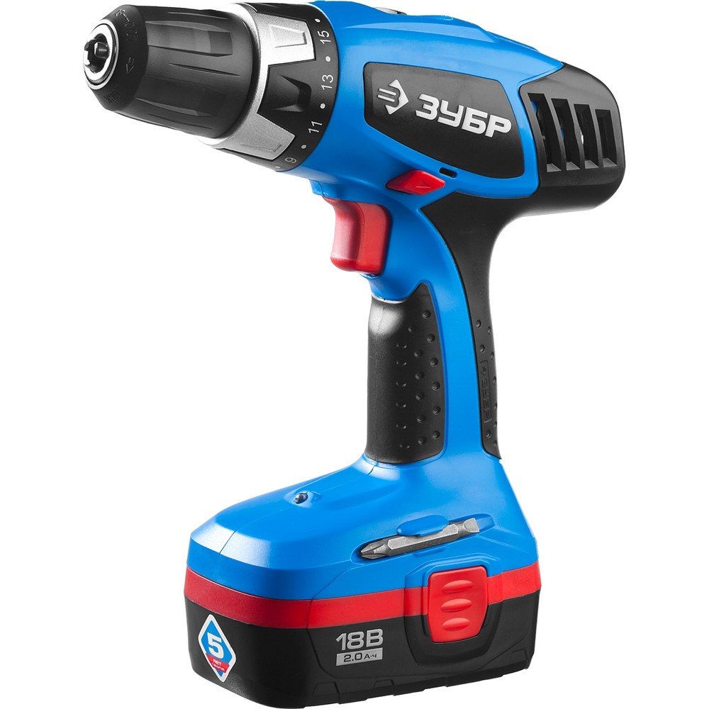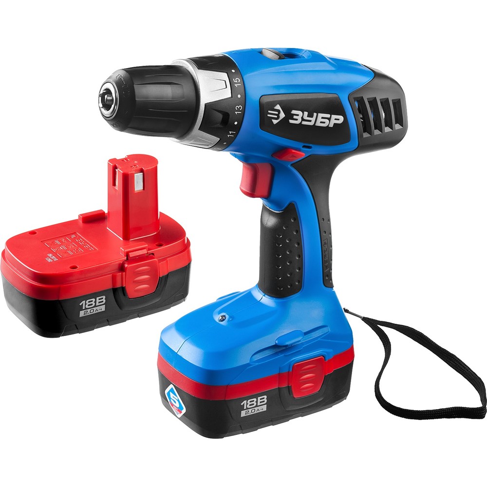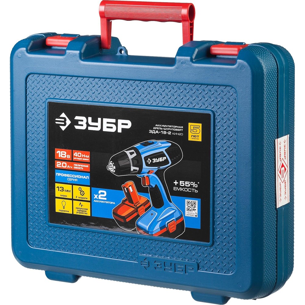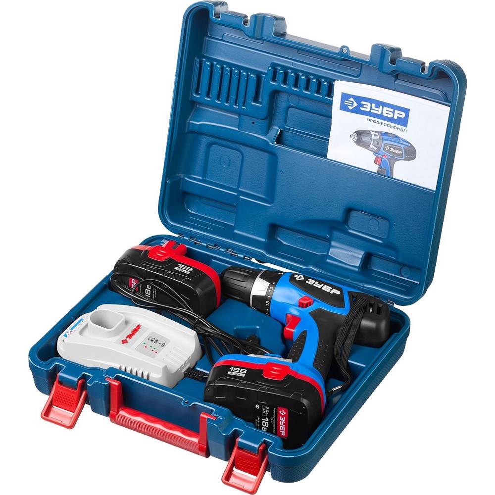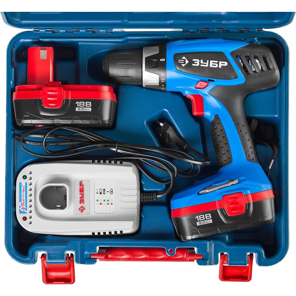 ЗУБР Ni-Cd, 18 В, 2 АКБ, дрель-шуруповерт "ПРОФЕССИОНАЛ", ЗДА-18-2 КИН20
