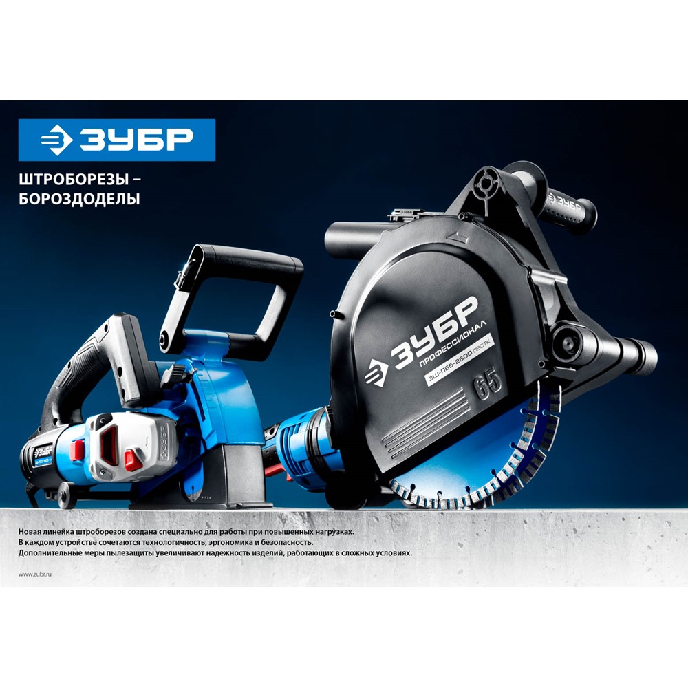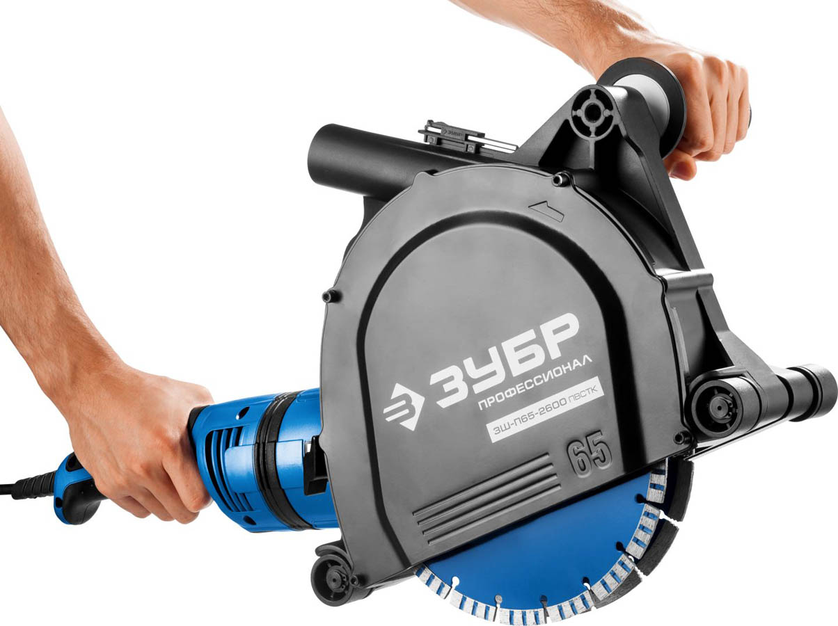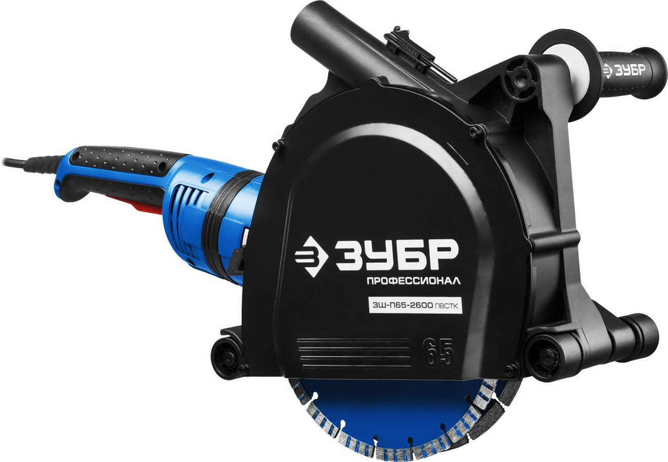 Штроборез (бороздодел), ЗУБР ЗШ-П65-2600 ПВСТК, макс. глуб. 65 мм, 230 мм, подключ. пылесоса, плавный пуск, защита от перегрузки, 2600 Вт