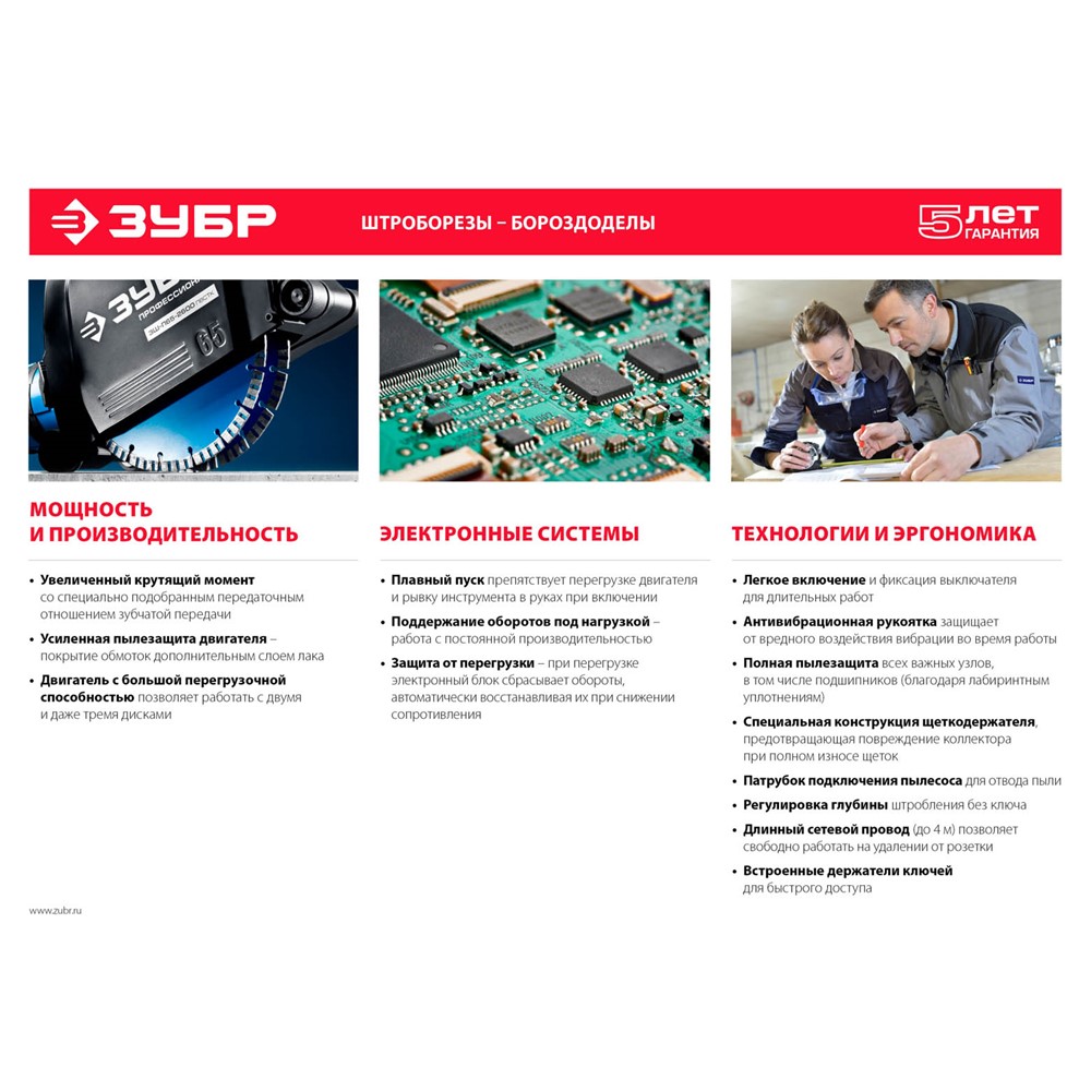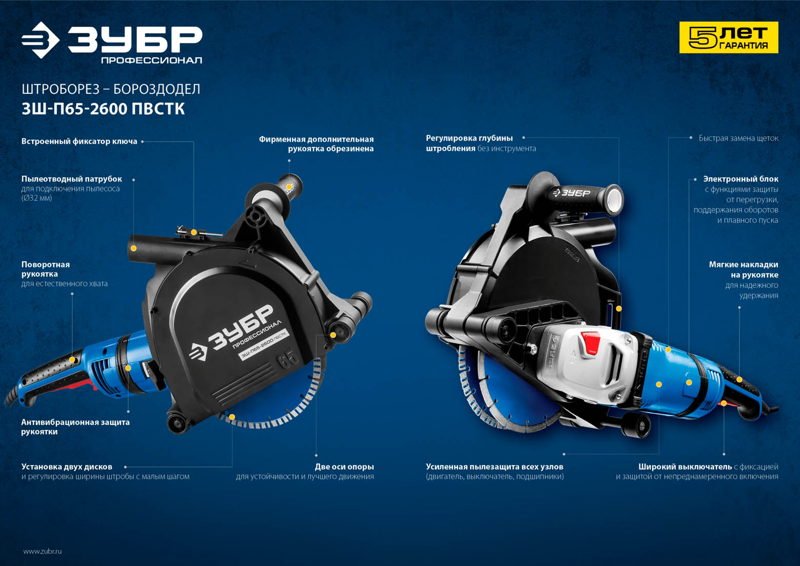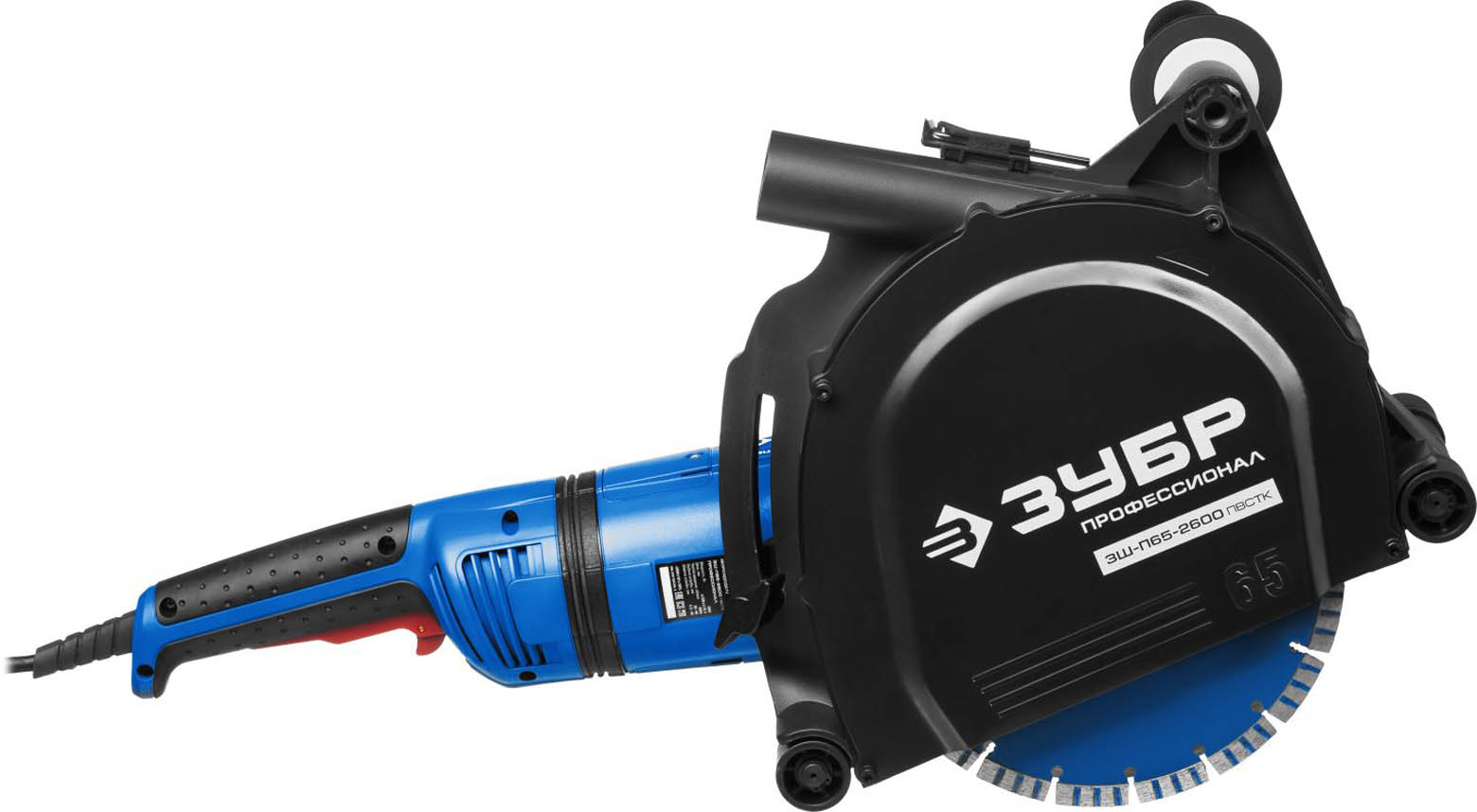 Штроборез (бороздодел), ЗУБР ЗШ-П65-2600 ПВСТК, макс. глуб. 65 мм, 230 мм, подключ. пылесоса, плавный пуск, защита от перегрузки, 2600 Вт